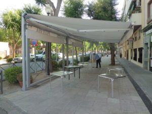 Este novedoso sistema permite alcanzar los 4,50 mts de salida, y una línea de 7 mts gracias a unos robustos brazos conformes a la normativa europea. Con este tipo de toldo puedes conseguir cubrir grandes dimensiones sin necesidad de pies de apoyo y creando espacios diáfanos y totalmente confortables.